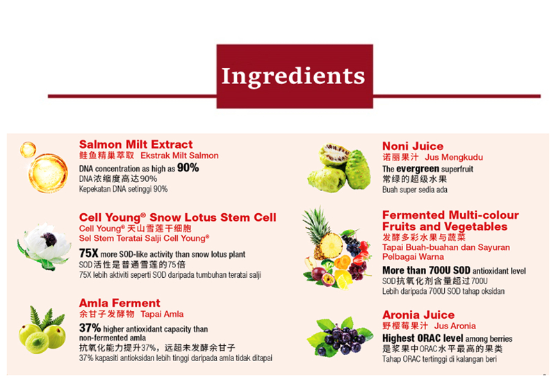 - High SOD-like activity to repair cellular oxidative damage caused by poor diet, toxins and environmental factors