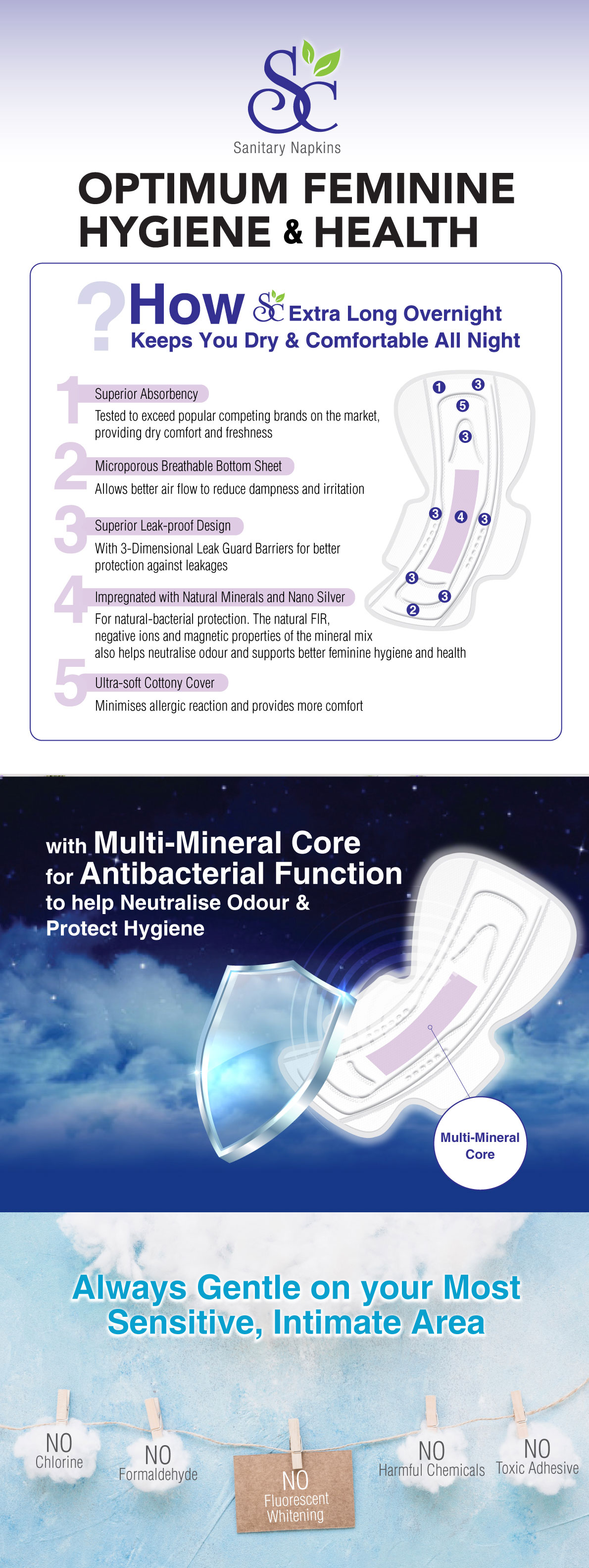Designed to maintain the level of hygiene and protection that is crucial to every woman. Excellent for those with menstrual discomforts, minor intimate hygiene problem and slight urinary incontinence. Comes with Lavender and unscented range.